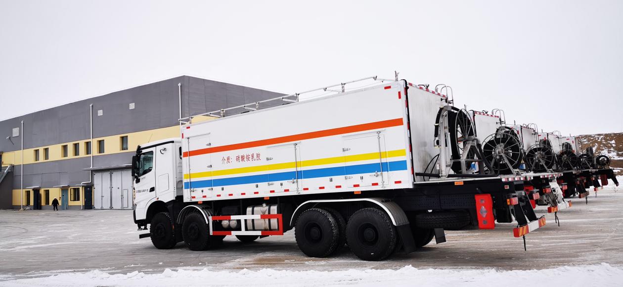 BCJ-3型現(xiàn)場混裝乳化炸藥車,可根據(jù)設(shè)計需求裝載高溫、常溫乳化基質(zhì)現(xiàn)場裝藥,也可根據(jù)爆破作業(yè)條件設(shè)計成單系統(tǒng)或雙系統(tǒng)兩種裝藥形式,滿足民爆行業(yè)法規(guī)與標(biāo)準(zhǔn)要求,具有安全連鎖保護(hù)技術(shù)和動態(tài)監(jiān)控信息技術(shù)?;煅b車具備自動卷揚(yáng)和旋轉(zhuǎn)功能,滿足多方位不同炮孔機(jī)械化裝藥需求,混裝車運(yùn)用信息化、智能化、數(shù)字化技術(shù)可實現(xiàn)乳化炸藥基質(zhì)流量檢測和控制功能,閉環(huán)控制和手持終端遠(yuǎn)程無線控制。