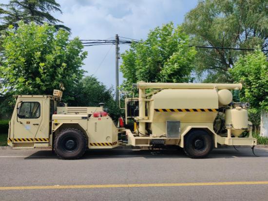 BCJ-Q型現(xiàn)場混裝銨油炸藥車創(chuàng)新性地將頂置螺旋式混裝系統(tǒng)與脈沖式密相氣力輸送技術(shù)相結(jié)合,成功實(shí)現(xiàn)了多孔粒狀銨油炸藥60m范圍內(nèi)、160kg/min高效氣力輸送。本項(xiàng)目研制的無線遙控手持機(jī)、生產(chǎn)信息云平臺、一鍵稱重裝藥技術(shù)、高精度計(jì)量系統(tǒng)提高了混裝車使用的安全性和信息化、智能化水平。