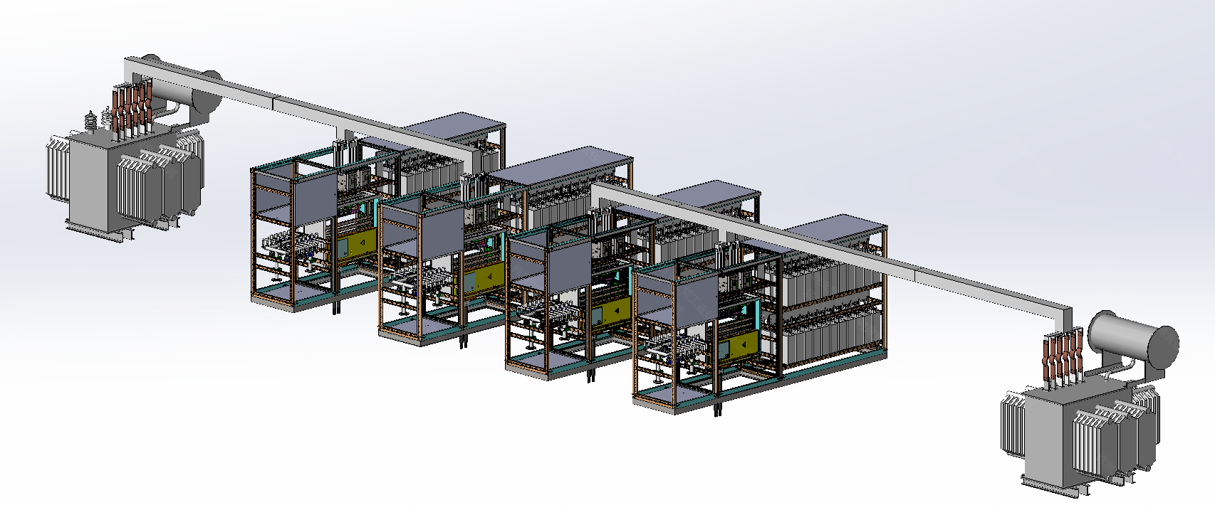 圖1 4×1000kW工頻串聯(lián)諧振逆變電源設(shè)備布局圖