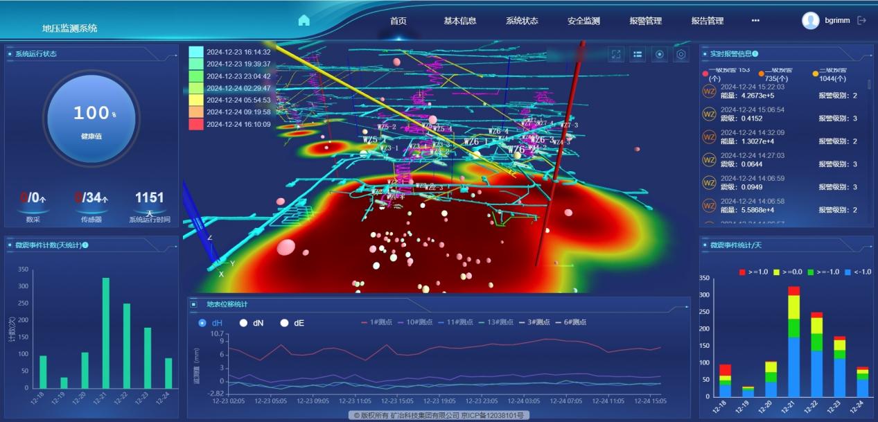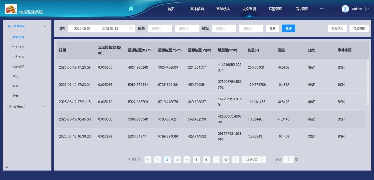 適用金屬礦山地壓監(jiān)測數(shù)據(jù)處理、分析、預(yù)警,具備三維可視化、安全監(jiān)測數(shù)據(jù)查詢、預(yù)警指標(biāo)設(shè)置、設(shè)備狀態(tài)實(shí)時監(jiān)控、分析報告生成等功能。1)震相拾取及自動定位時間<300ms;2)臺網(wǎng)內(nèi)微震事件定位誤差≤5%;3)微震事件識別準(zhǔn)確率>90%;4)地壓監(jiān)測預(yù)警時間<5min。