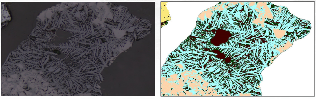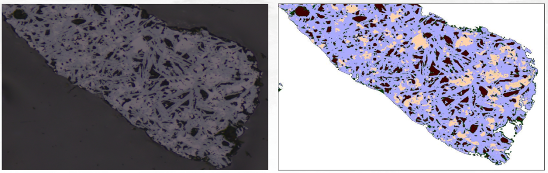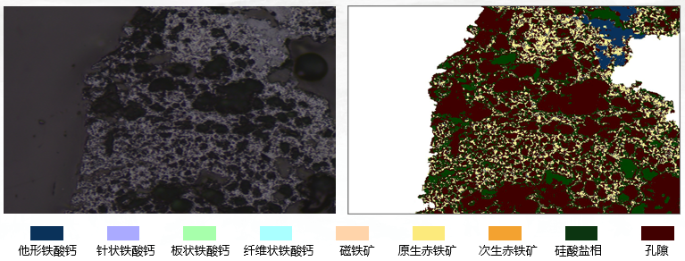 AI-SPS系統(tǒng)(AI based Iron-ore sinter phase and structure analysis system)是專為燒結(jié)礦顯微圖像開發(fā)的智能分析系統(tǒng),融合人工智能與圖像識(shí)別技術(shù),能夠自動(dòng)識(shí)別和量化燒結(jié)礦中的主要礦相(如磁鐵礦、赤鐵礦、鐵酸鈣等)及其微觀結(jié)構(gòu)形態(tài)(如針狀、纖維狀、板柱狀鐵酸鈣;原生、次生赤鐵礦),同時(shí)評(píng)估孔隙結(jié)構(gòu)與分布。傳統(tǒng)的礦相分析依賴人工經(jīng)驗(yàn),效率低、重復(fù)性差,而AI-SPS實(shí)現(xiàn)了“全像素識(shí)別+自動(dòng)統(tǒng)計(jì)+結(jié)果可視化”,僅需簡(jiǎn)單操作,即可快速獲得全面礦相報(bào)告。系統(tǒng)適用于燒結(jié)過程質(zhì)量控制、燒結(jié)配料方案評(píng)估、異常結(jié)構(gòu)排查等場(chǎng)景,幫助企業(yè)實(shí)現(xiàn)礦相識(shí)別的數(shù)字化、標(biāo)準(zhǔn)化、自動(dòng)化,有效提升燒結(jié)礦的穩(wěn)定性、抗壓強(qiáng)度和高爐透氣性。