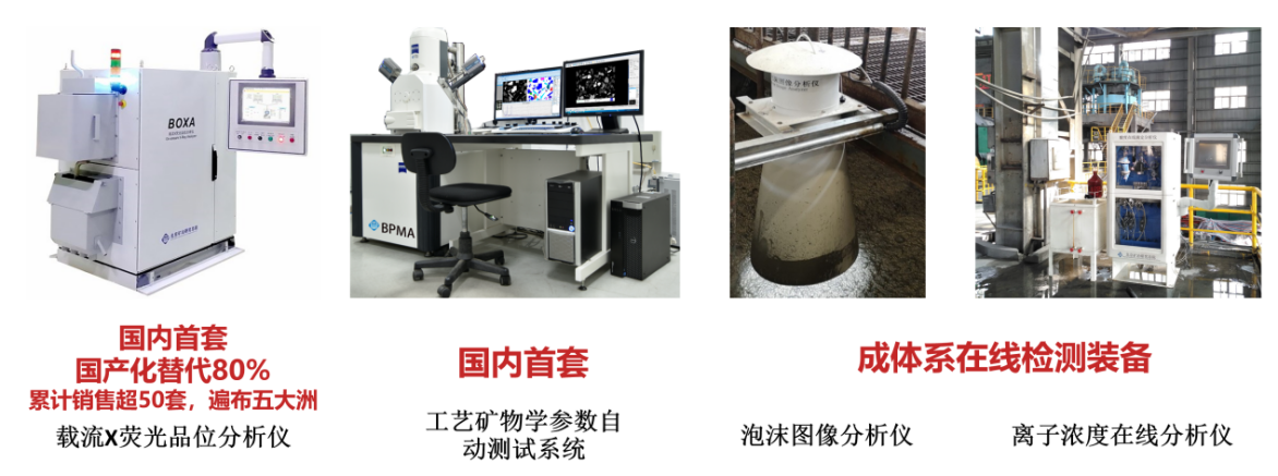 針對礦物資源加工過程中固液兩相流這類非均一體系在線檢測存在的擾動因素多、溶液體系復雜、流體特性多變、測量指標一致性差等問題,該系列產(chǎn)品突破國外技術壟斷,自主開發(fā)了適用于有色、黑色金屬礦漿、工業(yè)乳液、有色金屬粉末樣、煤泥水等的系列化取樣設備(BASS系列)、適用于重元素礦漿的BOXA載流X熒光品位分析儀、BPSM濃度粒度分析儀、BOTA系列離子濃度分析儀、BOSA礦石塊度分析儀、BFIPS泡沫圖像分析儀等。通過開展設備流體仿真、儀器調(diào)理與控制系統(tǒng)研制、專用儀器算法攻關及多場景非線性化儀器建模軟件開發(fā)等工作,攻克了選礦過程中關鍵性工藝參數(shù)在線測量代表性差、一致性不足、儀器精度及穩(wěn)定性不佳等諸多難題,解決了選冶流程檢測中取樣代表性與在線檢測有效性的關鍵問題。