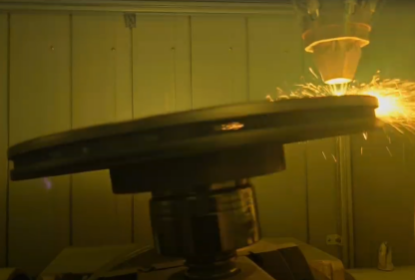 | 圖4 剎車盤耐磨涂層高速激光熔覆過程 | 圖5 熔覆前的剎車盤 | 圖6 熔覆后的剎車盤 |