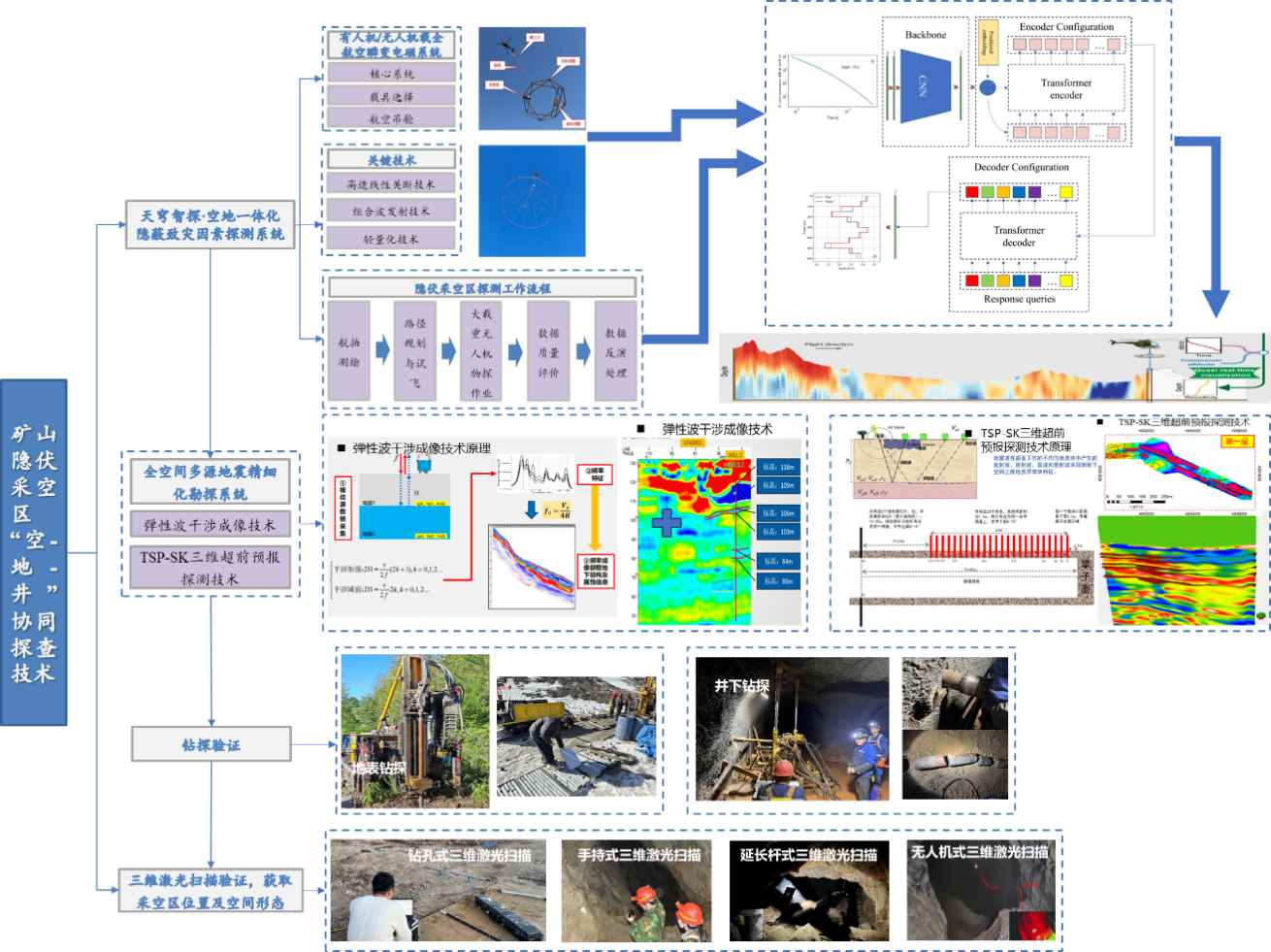 圖1 礦山隱伏采空區(qū)“空-地-井”協(xié)同探查技術(shù)