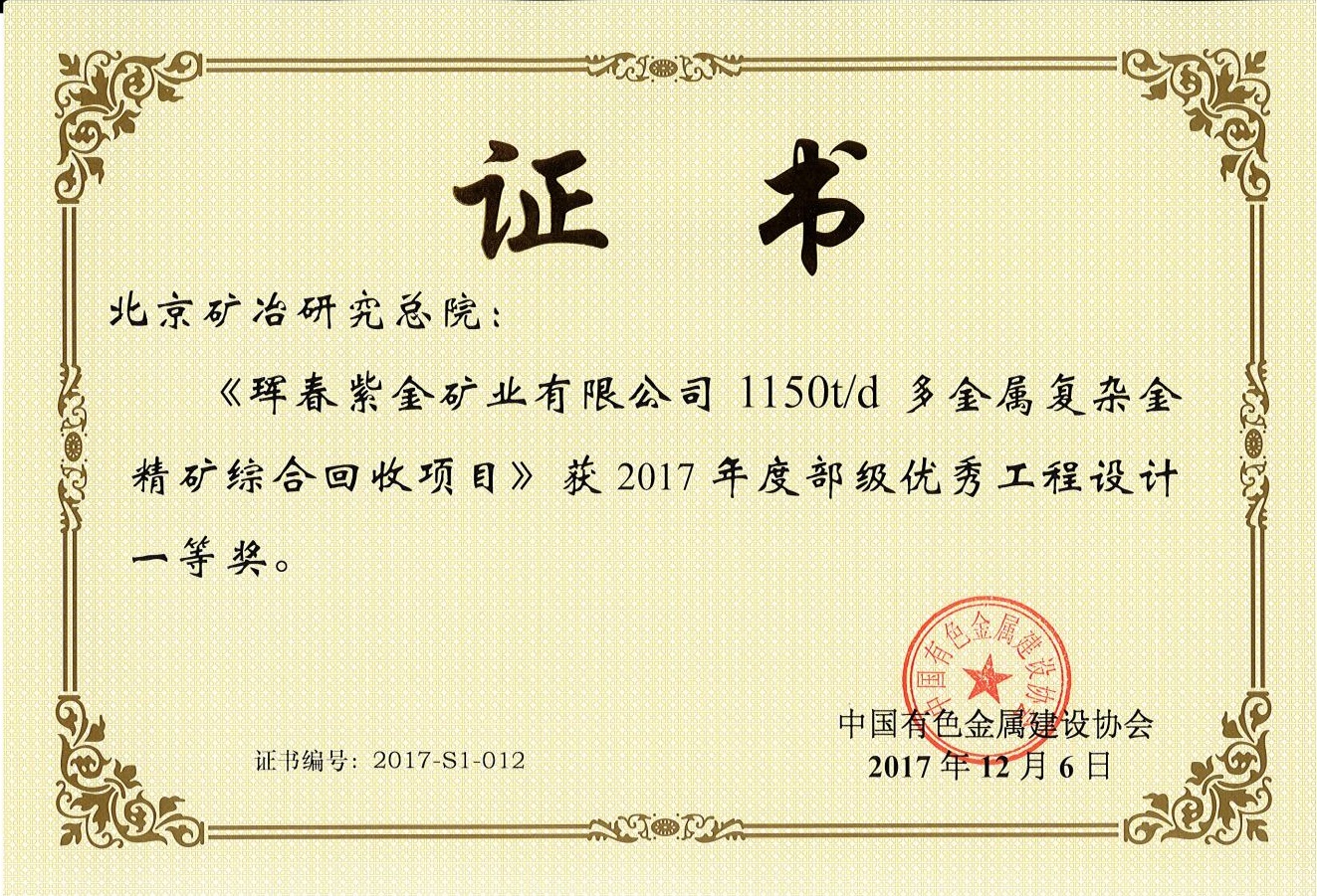 琿春紫金礦業(yè)有限公司1150td多金屬?gòu)?fù)雜金精礦綜合回收項(xiàng)目