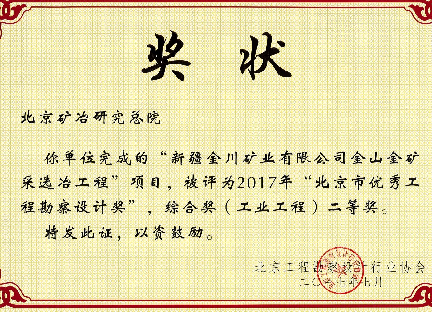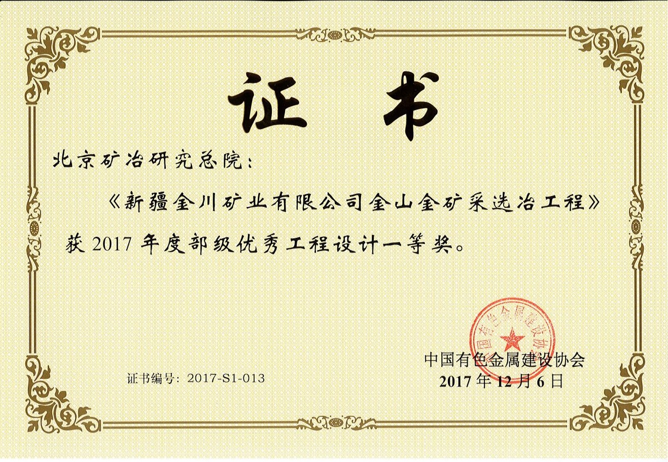 新疆金川礦業(yè)有限公司金山金礦采選冶工程——2017北勘設(shè)計(jì)獎(jiǎng)