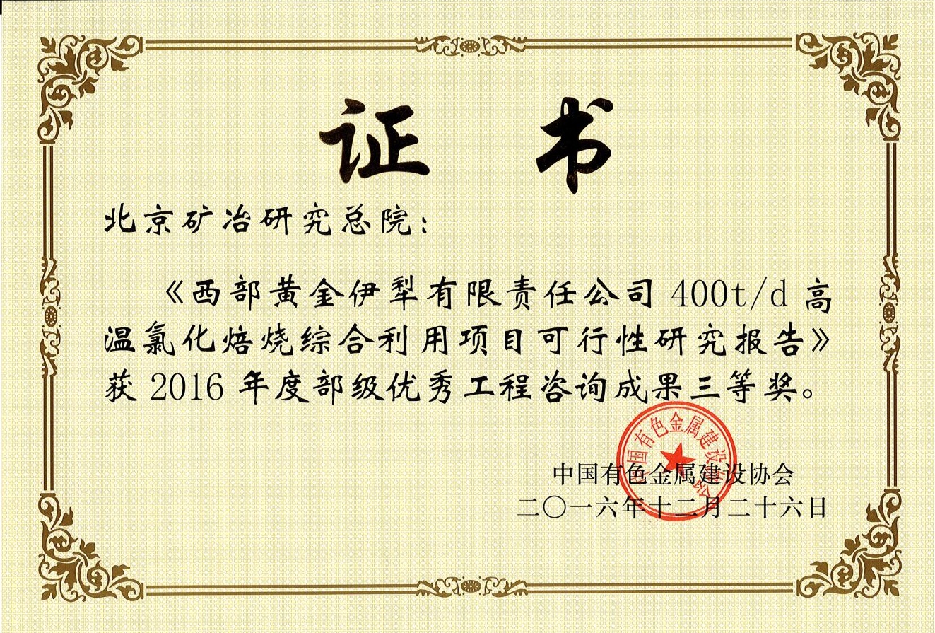 西部黃金伊犁有限責(zé)任公司400t d高溫氯化焙燒綜合利用項(xiàng)目可行性研究...