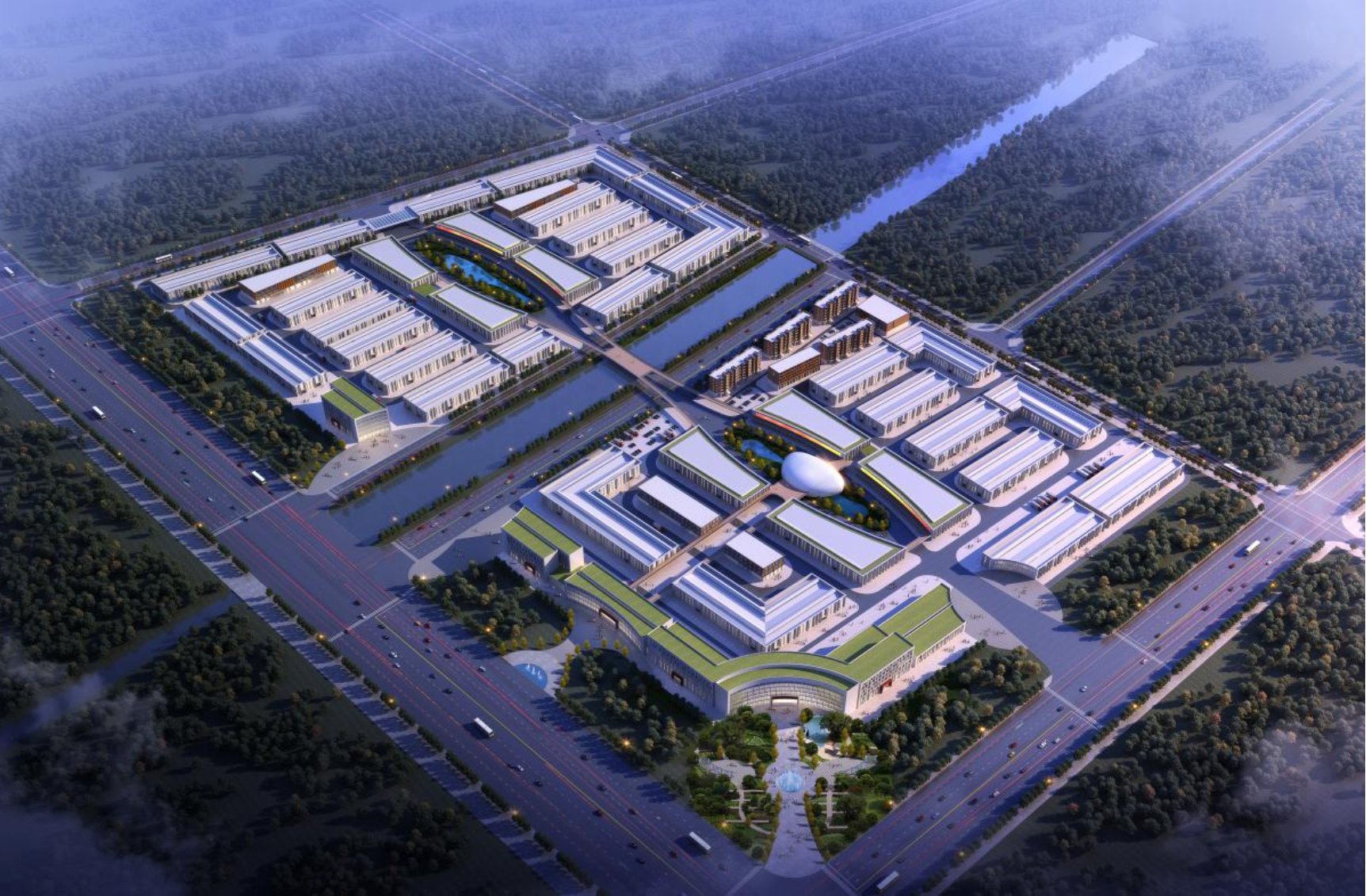 建設(shè)規(guī)模:總用地面積1883畝,總建筑面積125萬(wàn)平方米,功能涵蓋交易中心、酒店、調(diào)度中心、檢測(cè)中心、服務(wù)中心、物流庫(kù)房、生產(chǎn)廠(chǎng)房、宿舍等。